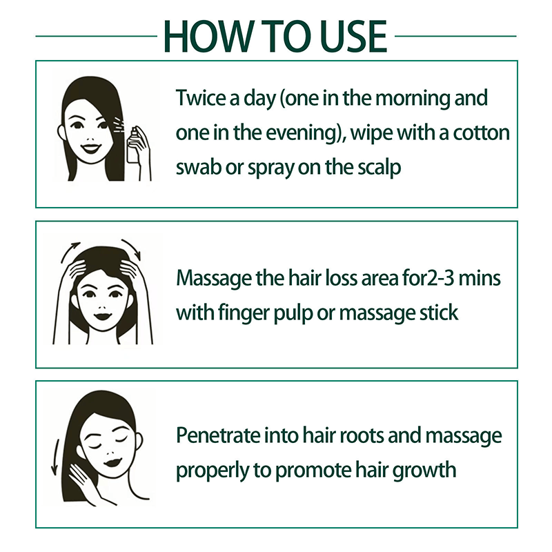 3. Massage and absorb: Use your fingertips to massage the serum into your scalp for 2–3 minutes, then allow it to penetrate fully before styling. For best results, use once in the morning and once at night.